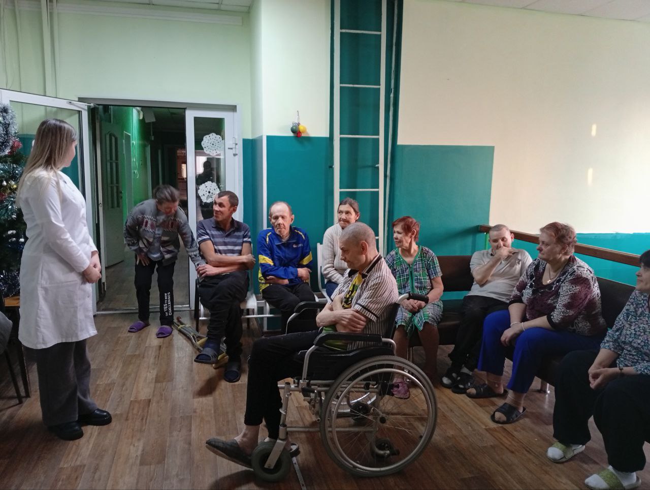 В преддверии Нового года получателей социальных услуг с лекцией о вреде распития спиртных напитков посетили сотрудникики ГБУЗ Кузбасского клинического наркологического диспансера им. профессора Н.П. Кокориной.